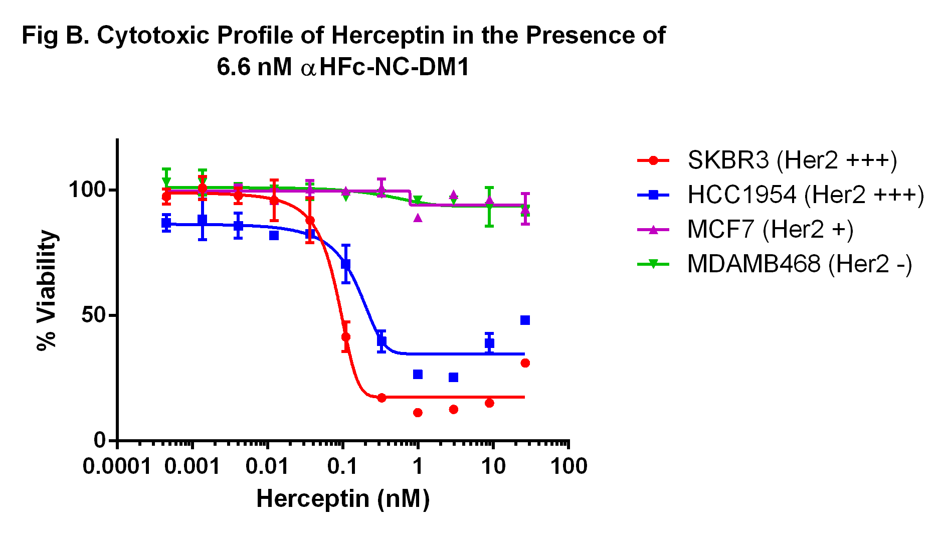 αHFc-NC-DM1 is anti-human IgG Fc specific antibody conjugated to maytansinoid DM1 with a non-cleavable linker. The antibody portion is a polyclonal antibody which is specific to the Fc region of human IgGs. DM1 is a cytotoxic small molecule which inhibits cell division by blocking the polymerization of tubulin. The non-cleavable linker connecting DM1 to the antibody is relatively stable in extracellular fluid, but can be cleaved upon entering cells. |