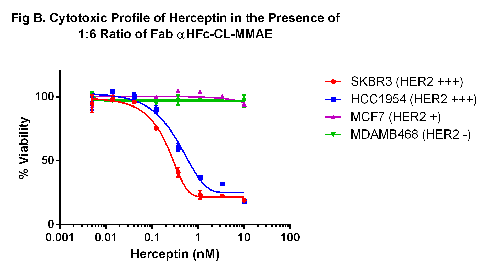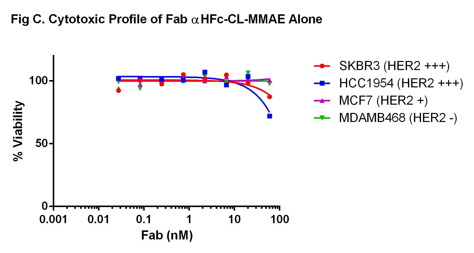 Fab-αHFc-CL-MMAE is a Fab fragment of anti-human IgG Fc specific antibody conjugated to monomethyl auristatin E (MMAE) with a cleavable linker. The antibody portion is a polyclonal antibody Fab fragment specific to the Fc region of human IgGs. Monomethyl auristatin E (MMAE) is a cytotoxic small molecule which inhibits cell division by blocking the polymerization of tubulin. The cleavable linker connecting MMAE to the antibody is stable in extracellular fluid, but can be cleaved by cathepsins upon entering cells. The mono-valence nature of Fab 2°ADC may have some advantage in certain applications than the full length IgG 2°ADC.